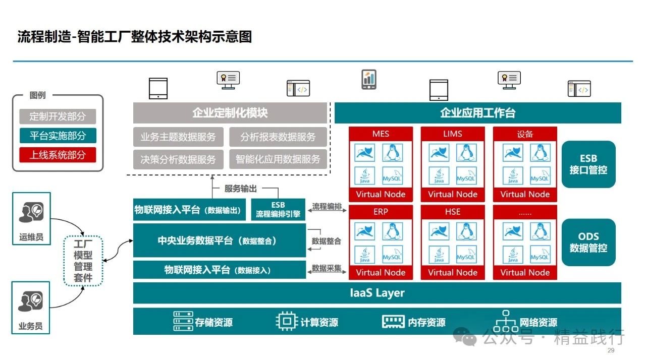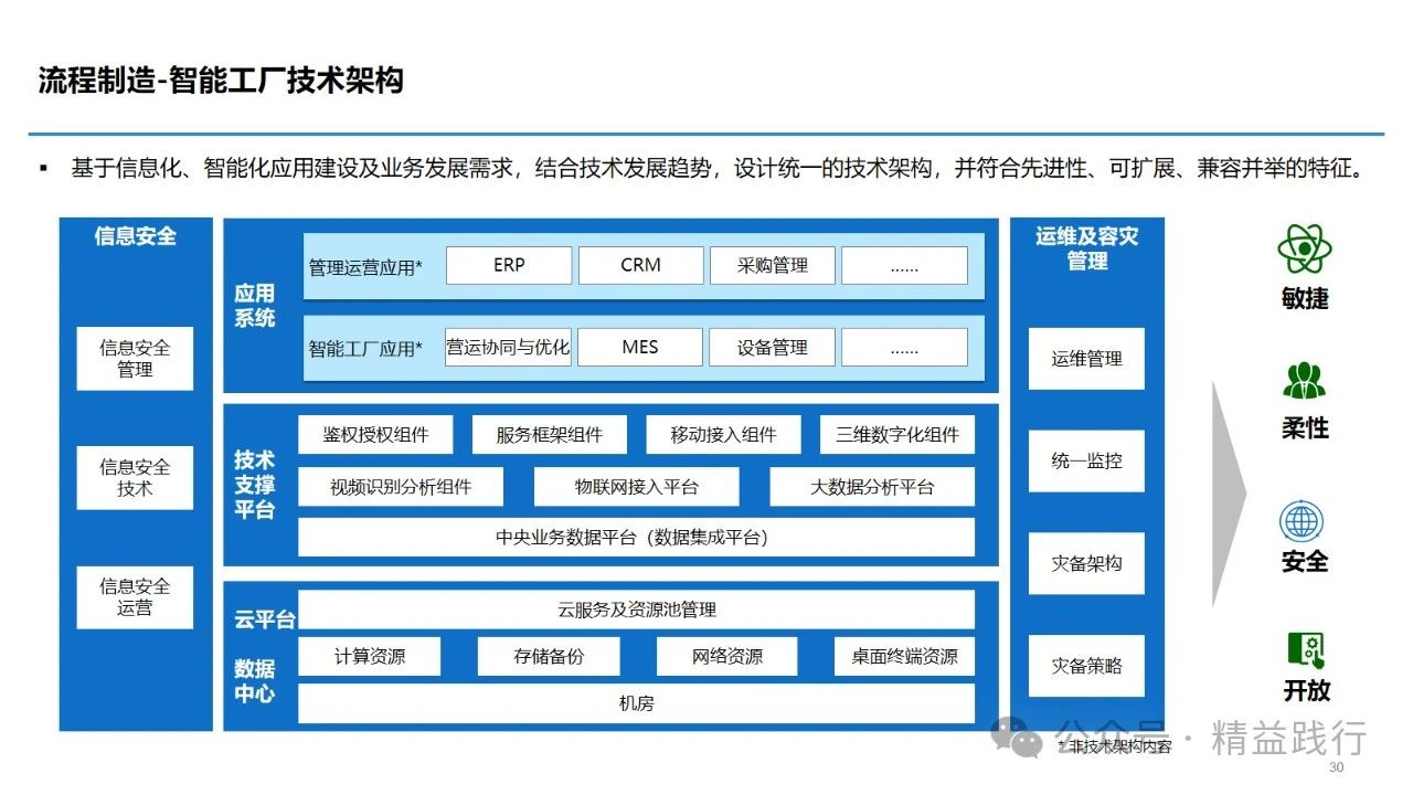 1、精益化的涉及和业务流程:在硬件设施规划前,一定要完成企业业务流程的优化,管理的精益化。没有精益管理思想的智能工程,只能是做的越多,浪费越大。