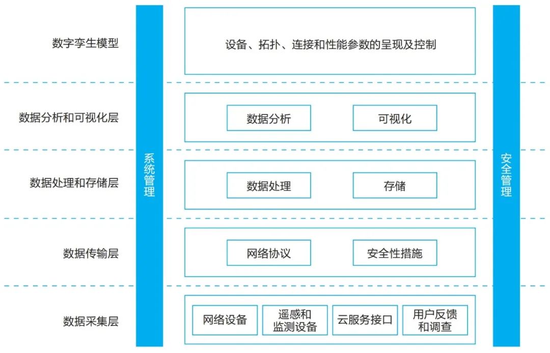 图1为数字孪生校园网络架构。数字孪生在校园网络建设应用中获取数据的架构通常包括以下关键组件和流程。