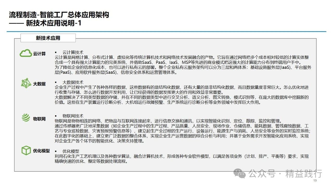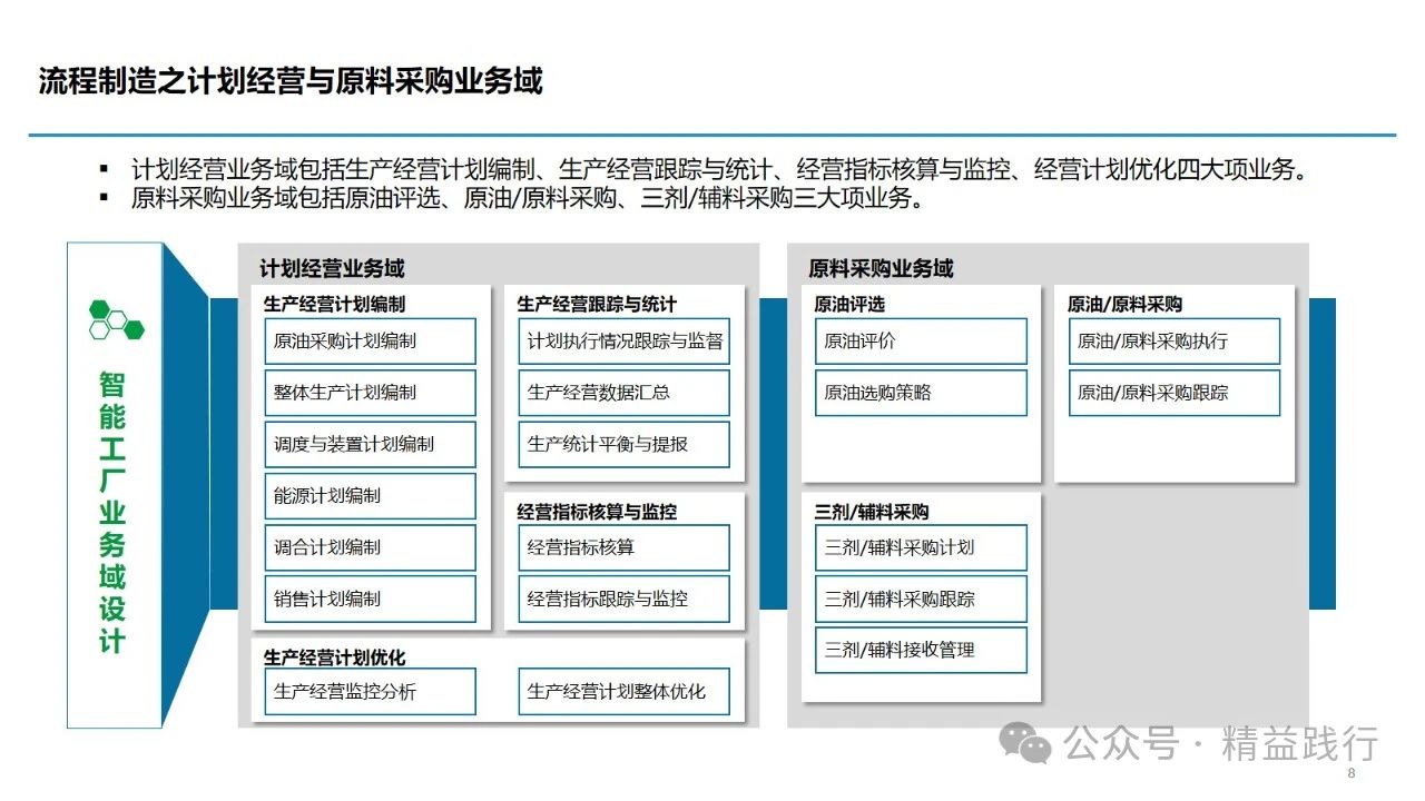 1、精益化的涉及和业务流程:在硬件设施规划前,一定要完成企业业务流程的优化,管理的精益化。没有精益管理思想的智能工程,只能是做的越多,浪费越大。