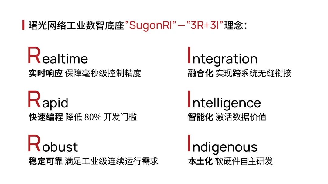 曙光网络推出的工业数智底座“SugonRI”,为机械工业数字化转型提供了有力支撑。作为国内极少数可贯穿全生产周期的工业数字化平台,独创的“3R+3I”理念构建起技术护城河。
