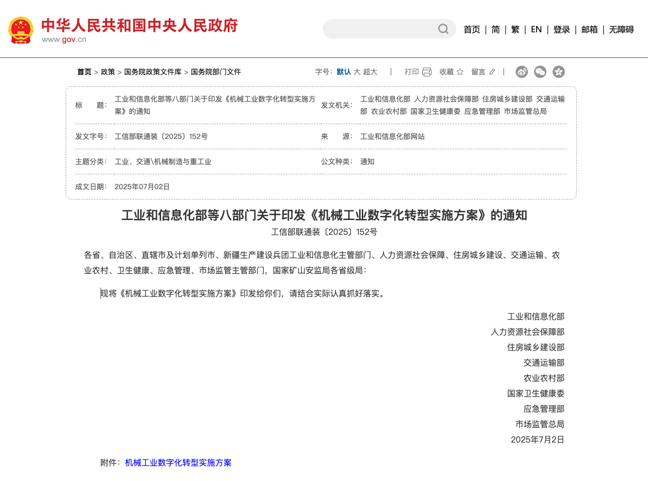 近日,工信部等八部门联合印发《机械工业数字化转型实施方案》,明确提出到2027年建成不少于200家卓越级智能工厂,推动数智技术在研发设计、生产制造、经营管理等环节广泛应用;到2030年实现机械工业规模以上企业基本完成数字化改造,促进数智技术与全产业链深度融合。