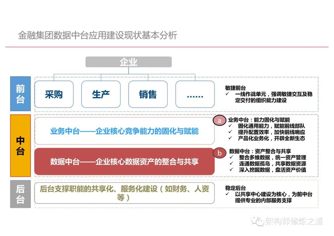 相对比数据中台与业务中台并行的复杂度和挑战度更高,路径二显得更加稳健,也是被企业采用最多的一种路径。