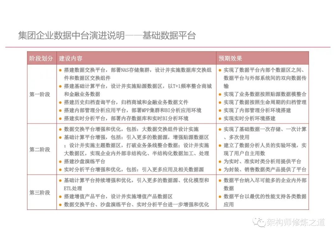 单建设数据中台等选择一般是在业务系统已经相对稳定时期,但是这种模式下也存在挑战。业务等野蛮生长过程,数据散落在各个系统,数据质量参差不齐。这个阶段进行数据治理,必定是非常繁杂耗时的、产出不明显的工作。同时,涉及各个领域的数据整合及数据能力的规范化,势必会带来组织架构的变革和重组,这是数据中台建设的至关重要环节。如果在上层的政策和资源支持上,不足以有效协调各个领域数据建设者同一目标,齐心协力,那么也很难把数据中台成功建设起来。