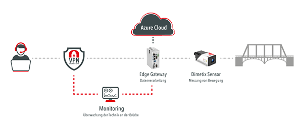 使用边缘计算的桥梁监测,经常受到天气、重载荷和运动的影响。为了检测可能的变形,同时不因测试而造成交通的中断,建议采用连续测量并报告桥梁变化的方法。基于激光测距传感器,虹科与Dimetix提供了一个合适的解决方案。由于其精度+-1mm和高达250Hz的高测量速率,该传感器甚至可以检测桥梁最小的运动。由于其测量距离长,该传感器可以在桥梁附近灵活安装。传感器收集的数据由Welotec传输到边缘网关并进行处理。网关在Azure I0T Hub和Azure Edge完全云集成,实现了分散数据处理和应用程序配置。软件环境和集成防火墙也最大程度上确保了安全性;用户可以安全的进行远程访问。存储在云端的数据,显示在仪表板上,并与警报系统相连。因此,如果在桥上出现明显的测量异常,操作员可以立即行动并采取必要措施。