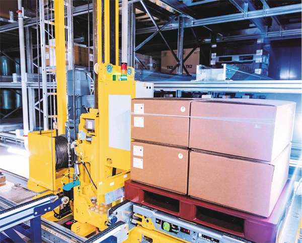 激光测距传感器安装在堆垛机的桅杆上,以毫米精度测量堆垛机的操作位置。